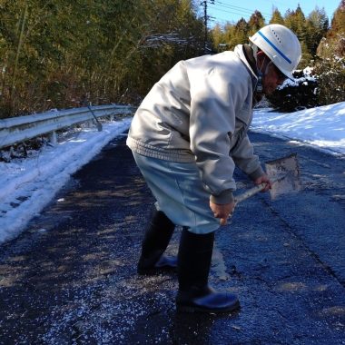 路面が凍結してツルツルにならないよう、まんべんなく散布しました。これで明日の朝、冷え込んでも一安心(のはず)です!